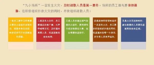 “九小場所”一旦發(fā)生火災(zāi),及時疏散人員是第一要務(wù)。場所的員工首先要保持鎮(zhèn)靜,第一時間撥打119報警,在積極組織撲救火災(zāi)的同時,盡快組織疏散人員。